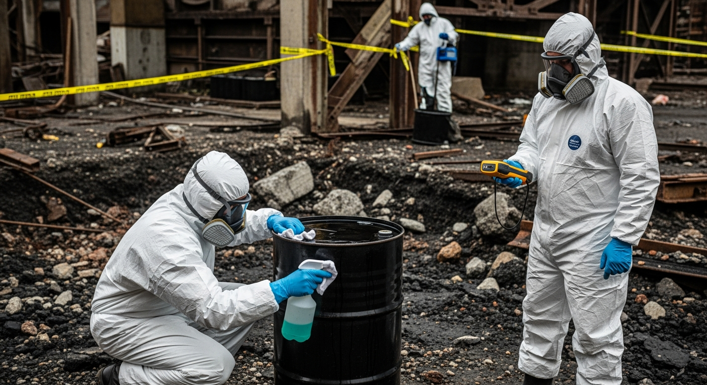 Retrait sécuritaire de matériaux amiantés selon les normes CNESST. Équipes en scaphandre.