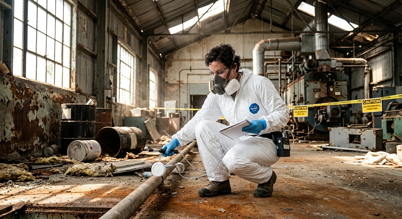 Retrait sécuritaire de matériaux amiantés selon les normes CNESST. Équipes en scaphandre.