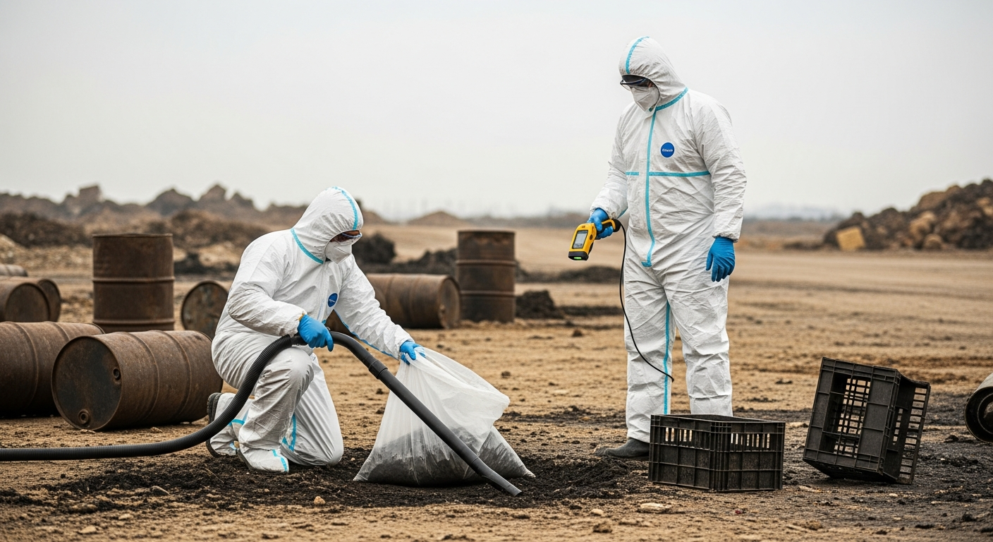 Retrait sécuritaire de matériaux amiantés selon les normes CNESST. Équipes en scaphandre.