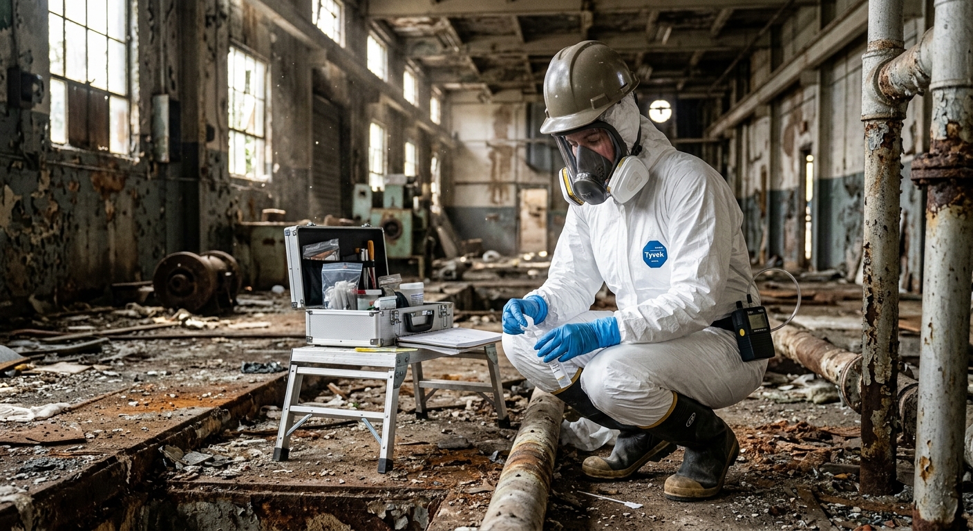Retrait sécuritaire de matériaux amiantés selon les normes CNESST. Équipes en scaphandre.