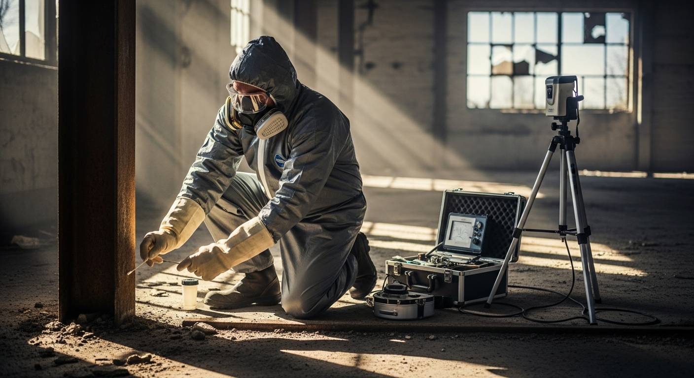 Retrait sécuritaire de matériaux amiantés selon les normes CNESST. Équipes en scaphandre.